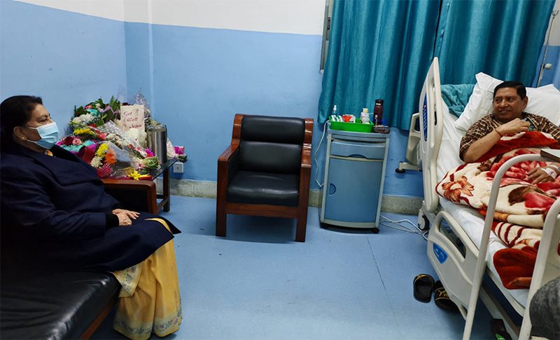 काठमाडौं । पूर्वराष्ट्रपति विद्यादेवी भण्डारी अस्पतालमा रहेका उपप्रधानमन्त्री तथा गृहमन्त्री नारायणकाजी श्रेष्ठलाई भेट्न पुगेकी छन् ।