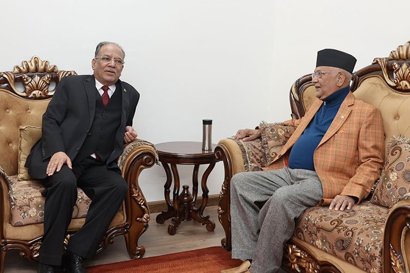 प्रधानमन्त्री प्रचण्ड र एमाले अध्यक्ष ओलीबीच सिंहदरबारमा भेटवार्ता